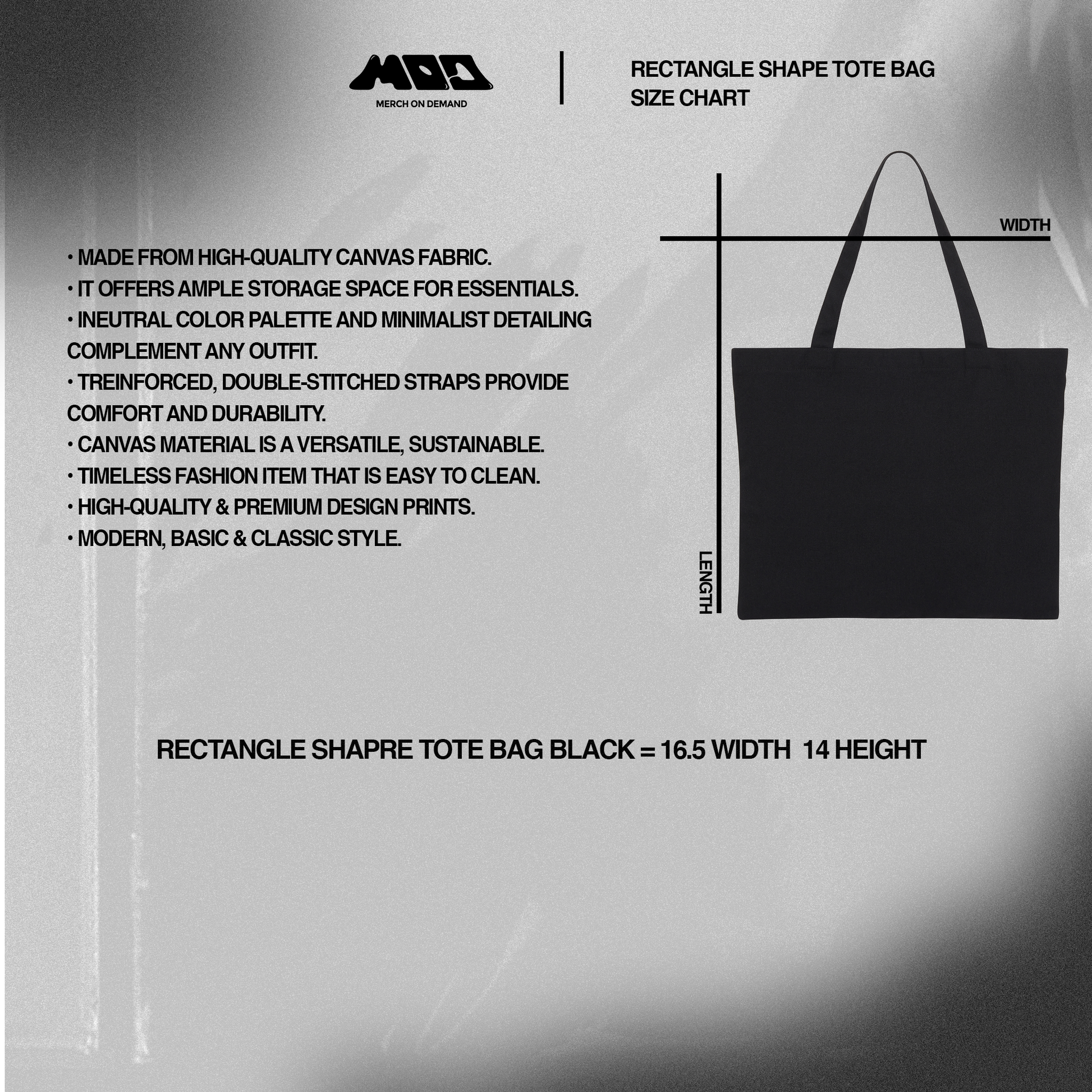 Rectangle Shape Tote Bag Black